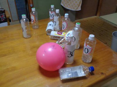 倒したピンに点数が入っており、点数競争しました目がハート (顔)