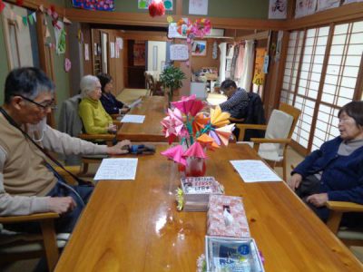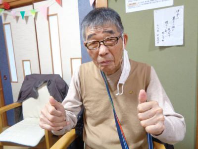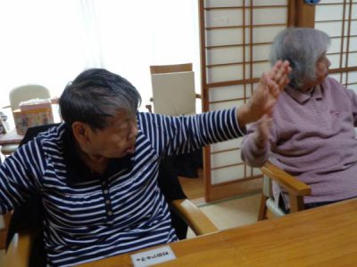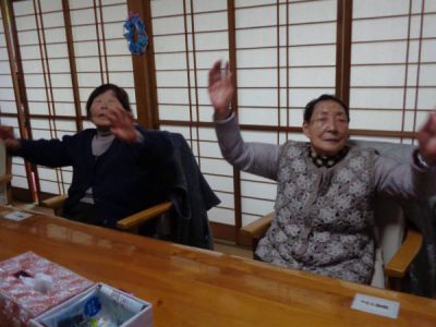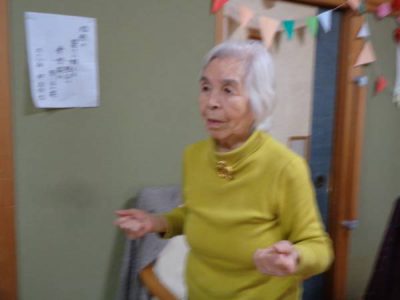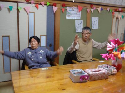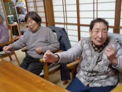 歌謡体操で、上肢と下肢と身体を動かし、ポカポカに温まり