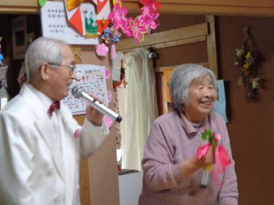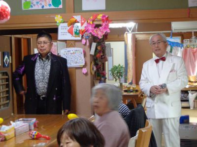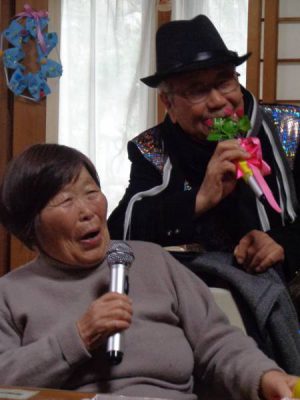 午後のレクレーションは、熊さん一座の歌謡ショーです