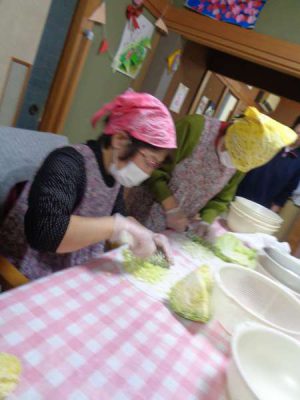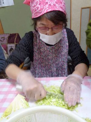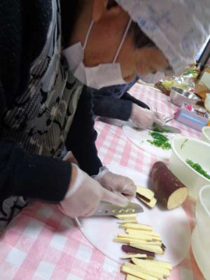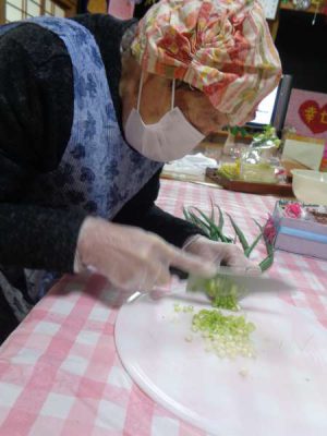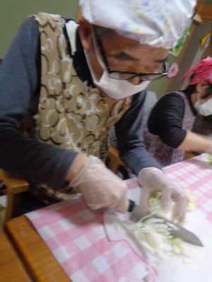 利用者様皆様の協力の下、野菜を手際よく切っていき、