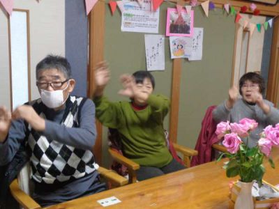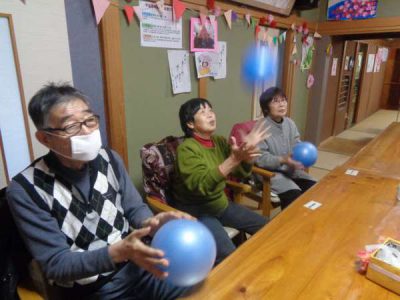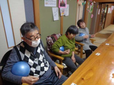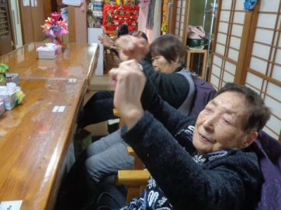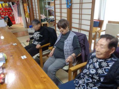 あいうべー体操、歌謡体操で上肢と下肢を動かした後、