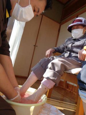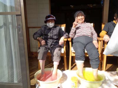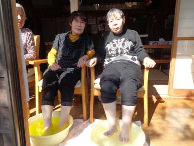 縁側に母たちの特設席を設けて、足湯を行いましたいい気分 (温泉)いい気分 (温泉)