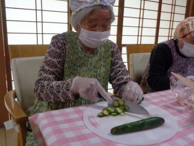 きゅうりは輪切り、玉ねぎはスライスにしましたわーい (嬉しい顔)