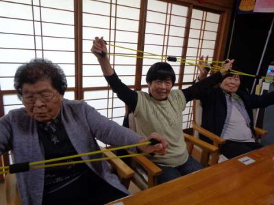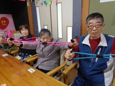 午前は、ゴムチューブ体操ですぴかぴか (新しい)