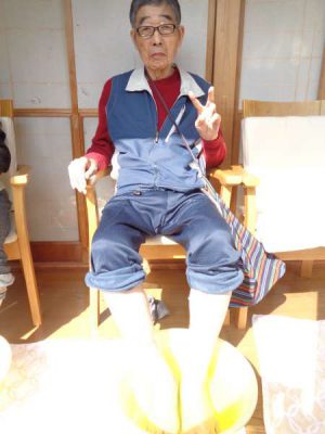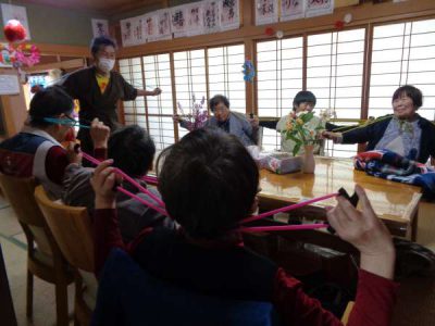 最後は、上に持ってもらい、『グー手 (グー)』と引っ張る体操で