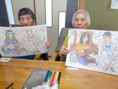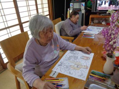 塗り絵は、脳活性化等の効果があり、認知症予防等に
