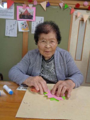 ハサミで切ったり、糊ではりつけたりします
