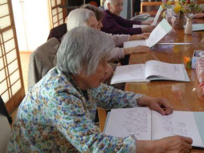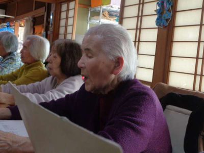 ハーモニカの音色にあわせて、歌を歌います