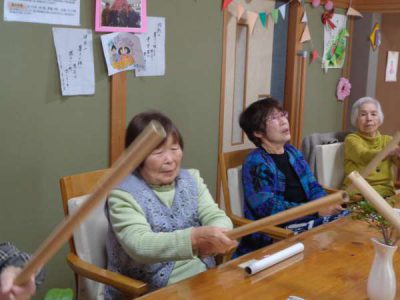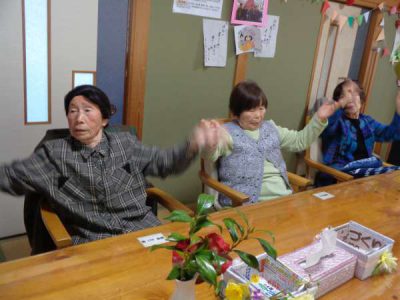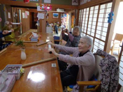 『三百六十五歩のマーチ』の音楽にあわせて、リズム体操を