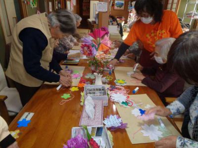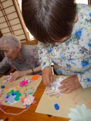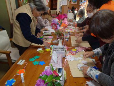 午後は、午前中と同じく、飾りつけ作りを行いました