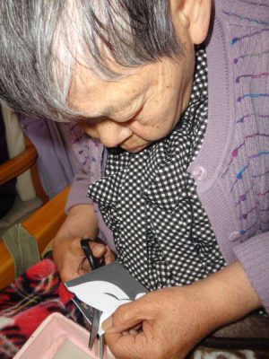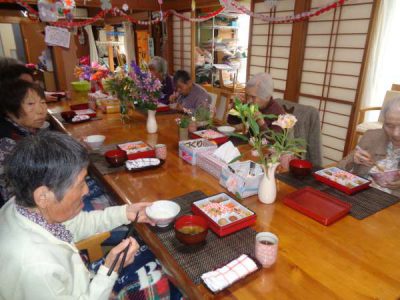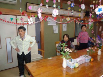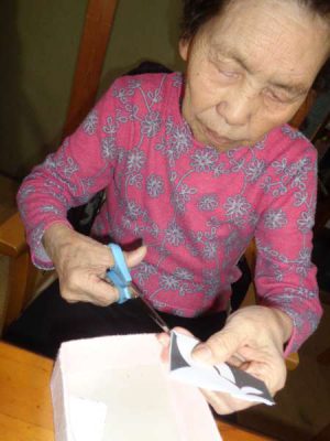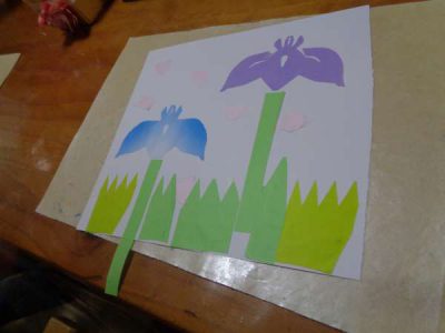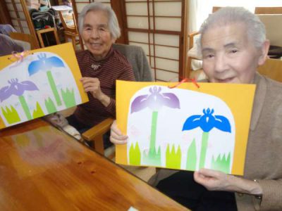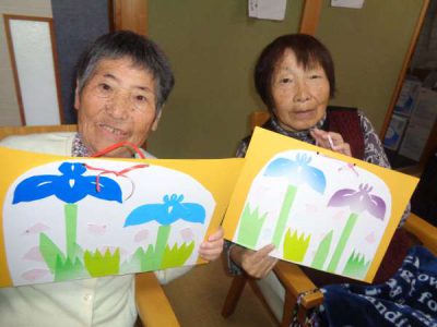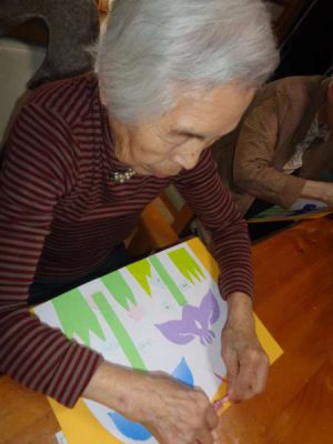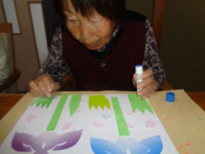午前中は、手工芸で、折り紙を切ったり、貼ったりと、