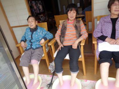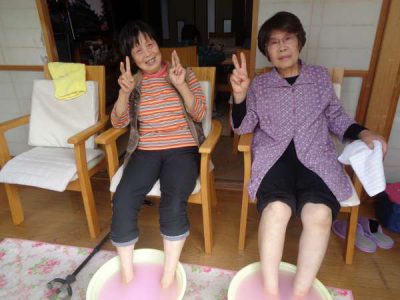 足湯で足を温めた後、足のマッサージを行いましたわーい (嬉しい顔)