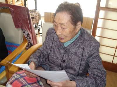 ぼけたらあかん  幸せの三か条の唱和わーい (嬉しい顔)