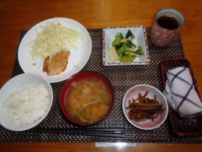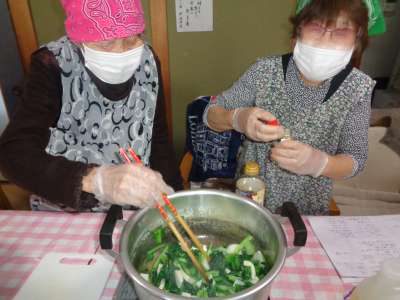 小松菜とかまぼこの和え物を作ってくれました手 (チョキ)
