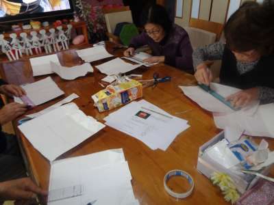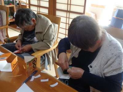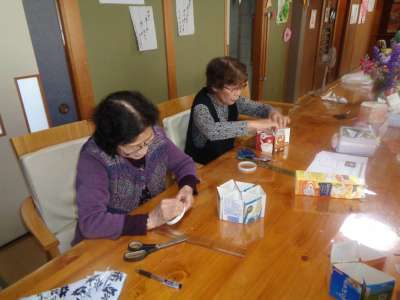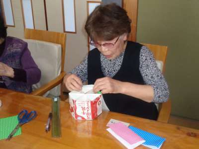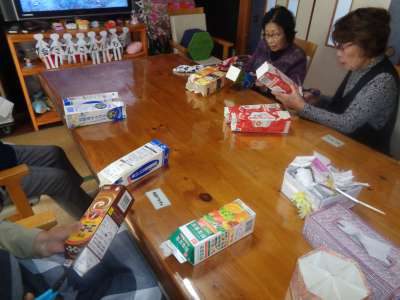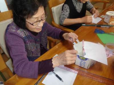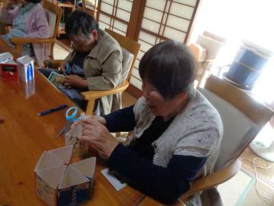 午後は、牛乳パックを使った工作です