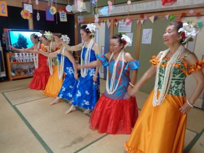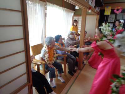 縁側からの特設席から、母たちは、とても楽しそうにフラダンス