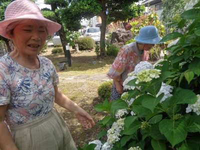 紫陽花の花を観賞