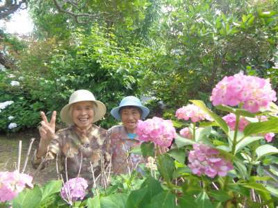 幸せの庭に咲く紫陽花です