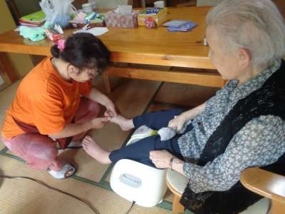 レクは足湯—–