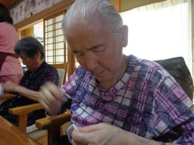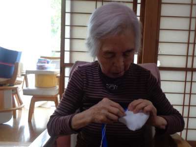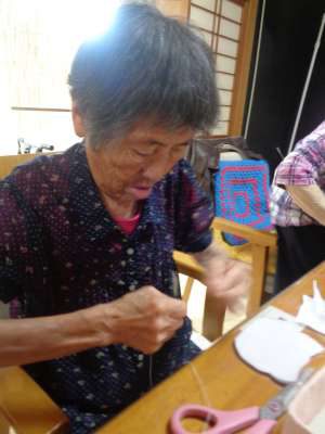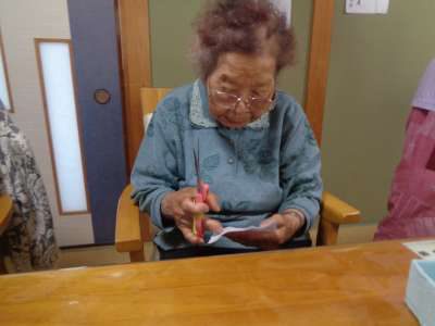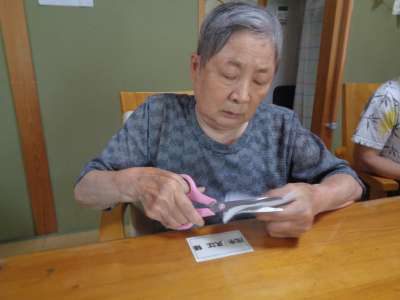レクははさみと針を使い