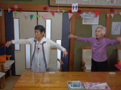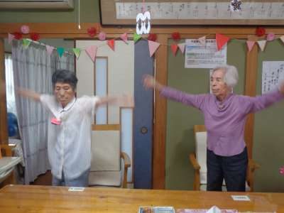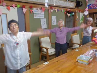 歌謡体操で、上肢と下肢を動かしましたわーい (嬉しい顔)