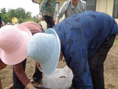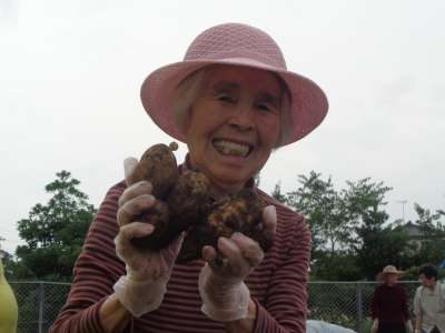 母たちは、本当に汗だくになりながら、じゃが芋堀りをして