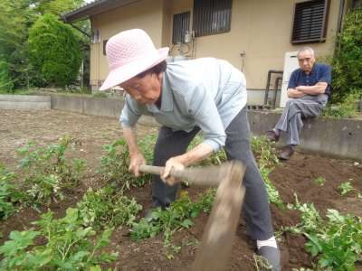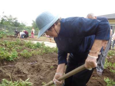 午後は、陽だまりの幸望庵にて、じゃが芋堀りを行いました