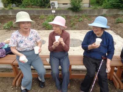 じゃが芋堀りが終わった後は、水分補給で一服しました