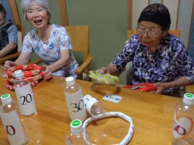 皆さんの応援虚しく、なげた輪は思うように入りませんでした