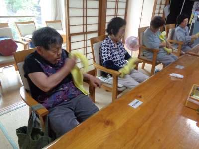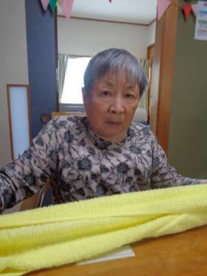 タオルを持ち上げて、タオルをまっすぐに伸ばします