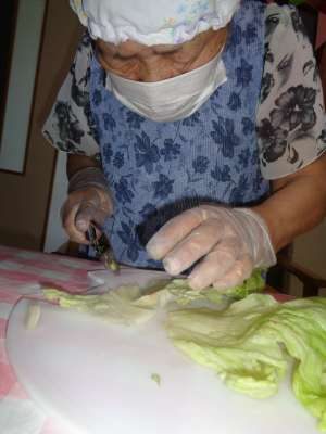 母は千切りキャベツを綺麗に切って
