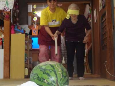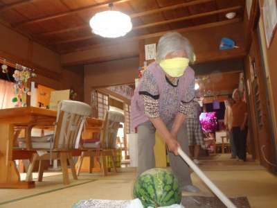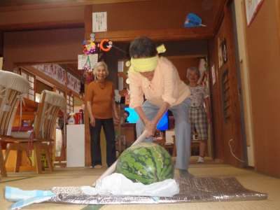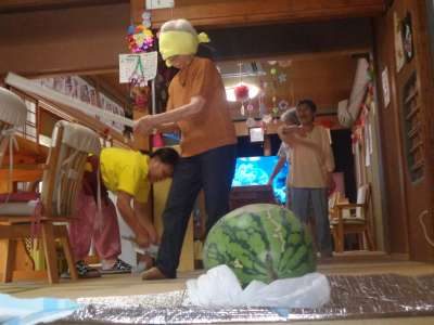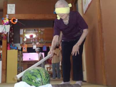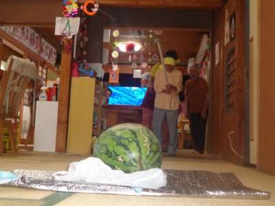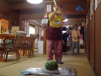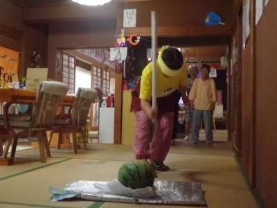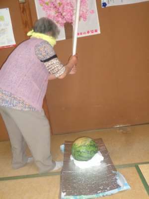 休み時間に西瓜割をしました