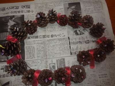 レクは松ぼっくりのリース