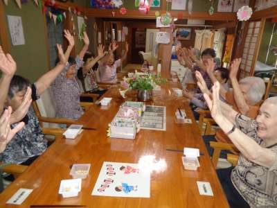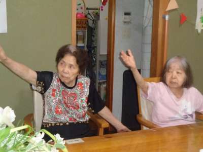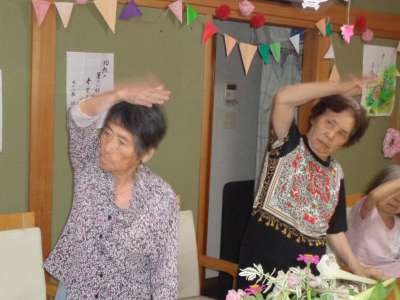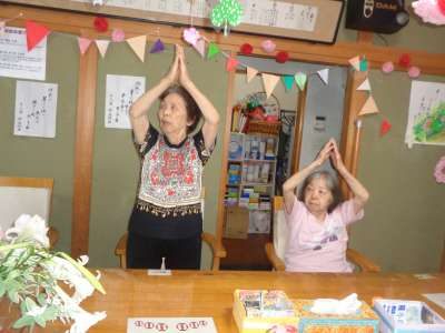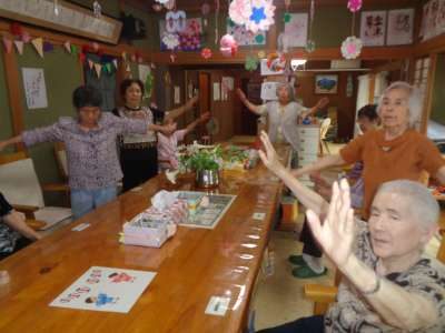 歌謡体操で、上肢と下肢を沢山動かしました