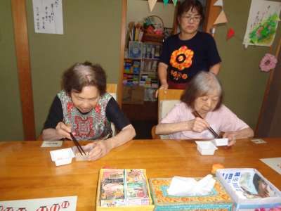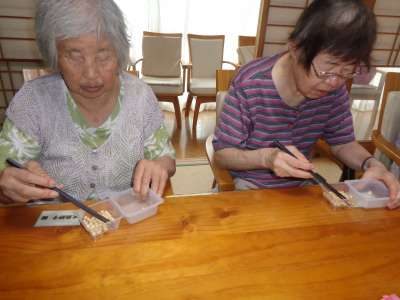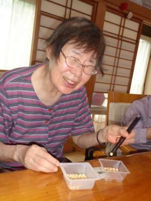 母達は豆を落とさない様に上手に箸を使います