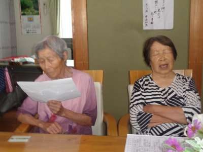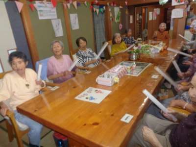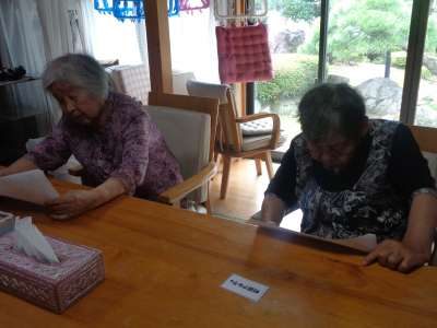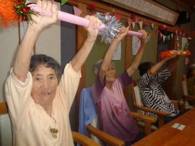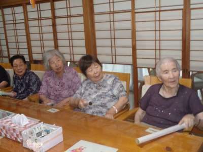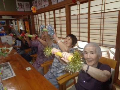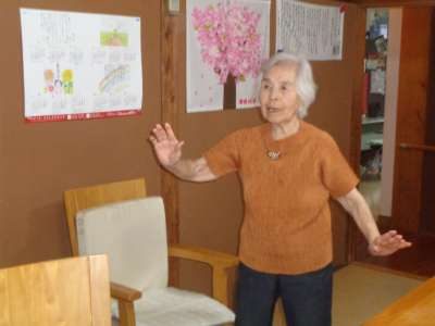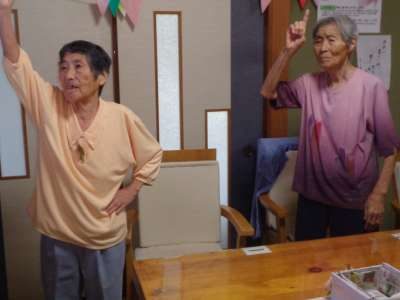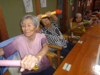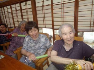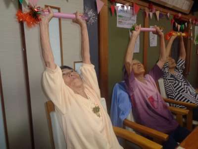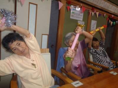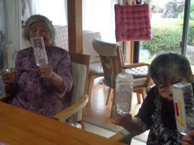 カラオケの歌を歌いながら、棒で机を叩きリズムをとりました
