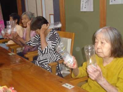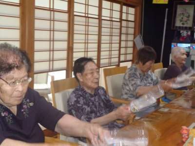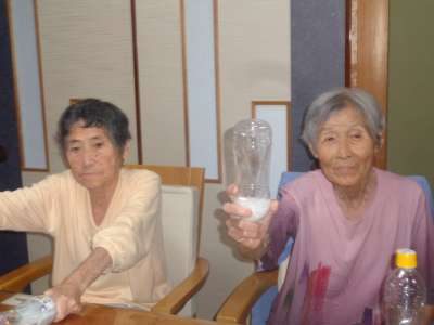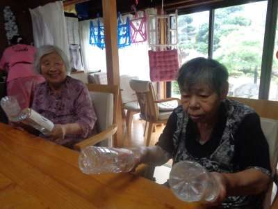 ペットボトルを上から下に振り下ろす要領で、振ってもらい