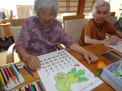 イチジクがとても美味しそうに色塗りが出来ましたクラブ
