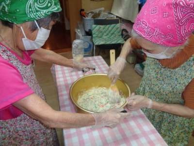こうして、幸せの幸望庵の調理レクでは、協力して調理を