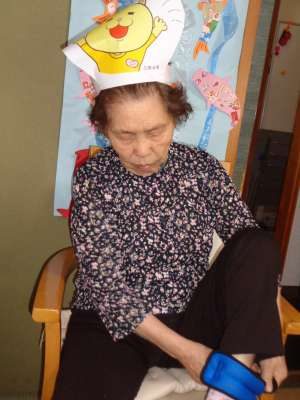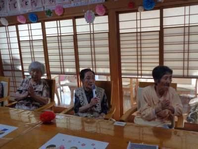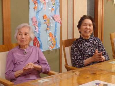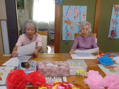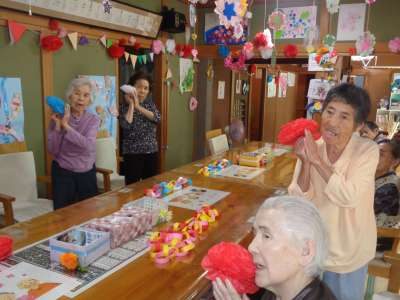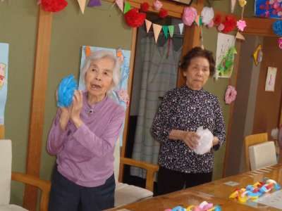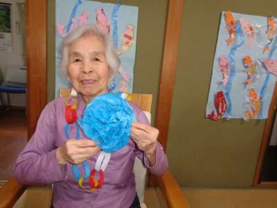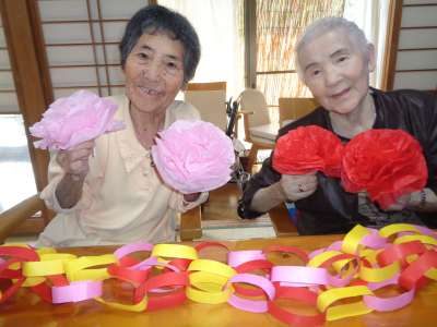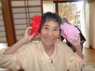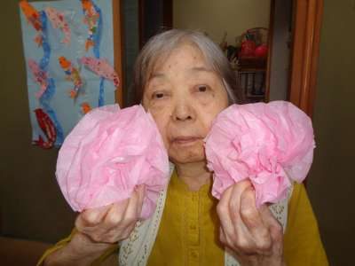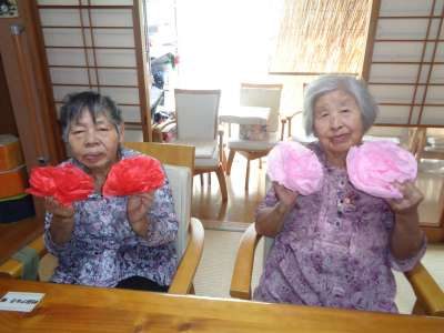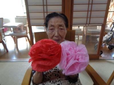 今日は、敬老会で使用したフラワーペーパーをもってもらい