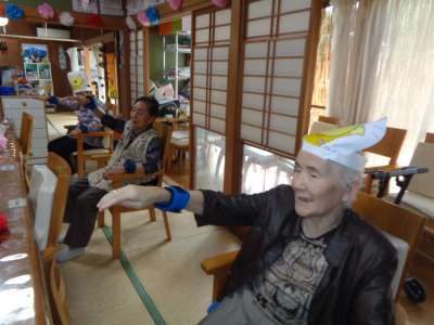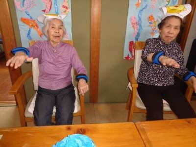 今日は、ペーパーフラワーをもって、しっかりと身体を動かし