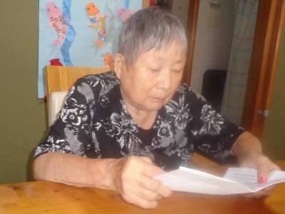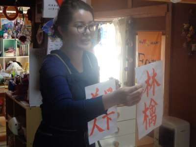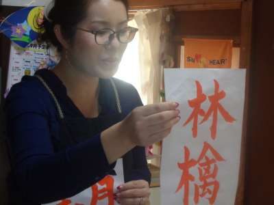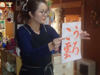 漢字は難しいので、先生と一緒にひらがなの『りんご