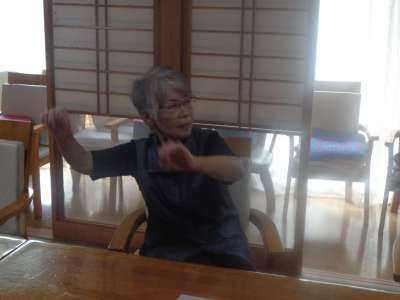 テレビ体操も、大きなテレビの大画面に映る体操の先生と