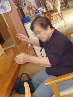 集合写真を撮り終わった後、南京玉すだれを興味深そうに