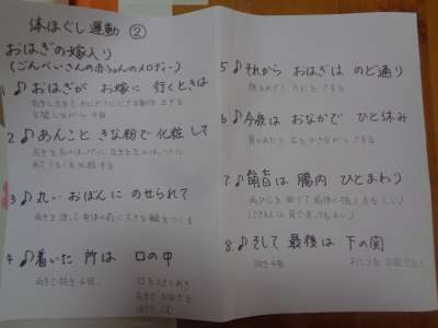 最後は、体ほぐし運動(おはぎの嫁入り)を行いました