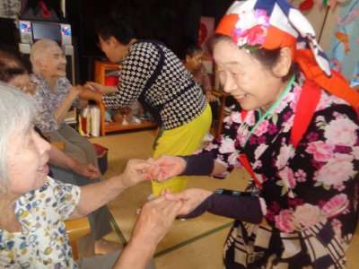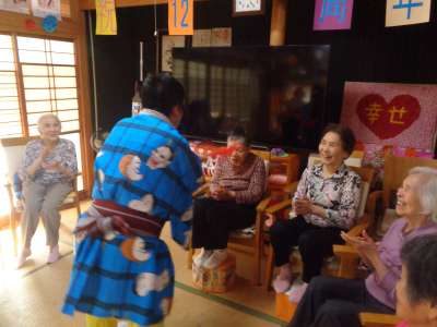 これから始まる南京玉すだれを、今か今かと楽しみに待って