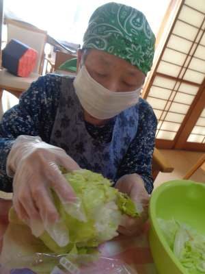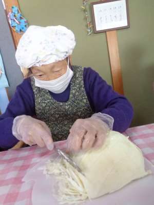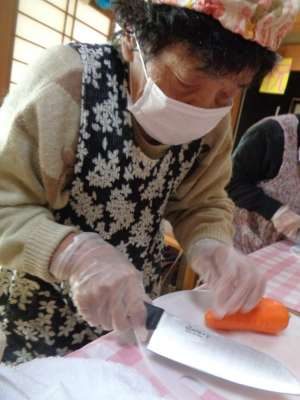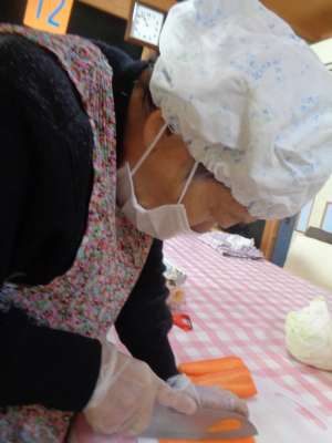 母たちの見事な包丁使いで、野菜が食べやすい大きさ