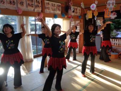 歌謡体操で、身体を動かし上肢と下肢を動かしました