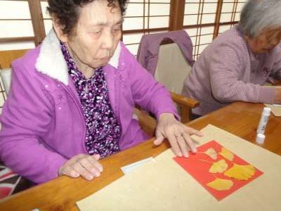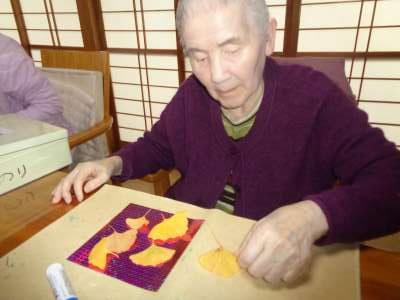 台紙に銀杏の葉っぱを貼って行きます