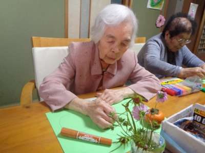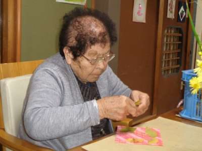 母は綺麗な葉っぱを沢山のなかから選びます